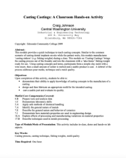 This eight-page guide from Edmonds Community College outlines a one-hour laboratory activity demonstrating casting concepts. Students design and fabricate a clay mold to cast a usable fishing weight, or "casting sinker." This activity demonstrates how "materials properties are used in engineering...