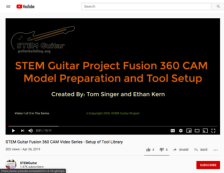 This video, made available by the STEM Guitar Project, is the first of three videos in the STEM Guitar Fusion 360 computer-aided manufacturing (CAM) Video Series. Topics covered in this narrated video include modifying the sketch in Fusion 360 and creating the tooling library setup for cutting the...