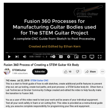 This video, made available by the STEM Guitar Project, is a narrated demonstration of the creation of electric guitar bodies in Fusion 360 computer-aided manufacturing software. Tom Singer goes through the process of creating a custom guitar body shape while narrating each step in detail and...