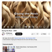 This video, made available by the STEM Guitar Project, was recorded at the Guitar Build Institute held at Aptos Middle School in San Francisco, California in 2018. In the video Nancy Chang demonstrates gluing the fretboard onto the neck of the guitar during electric guitar construction. The video...