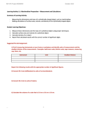 This 7-page learning activity, was published by Erie Community College and is from the Introduction to Vacuum Technology Student and Instructor Laboratory Manuals that accompany the Introduction to Vacuum Technology E-Book. This activity has students measure the dimensions of a cylindrically-shaped...