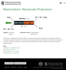 This lab, presented by the National Nanotechnology Coordinated Infrastructure, covers the concept of nanomotors. Students will learn about nanometers through hands-on experiments which "explore nanoscale propulsion principles and guide students in recognizing and analyzing differences between...