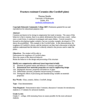 This four-page instructor guide from Edmonds Community College provides a lesson plan demonstrating the durability, design, and structure of Corelle tempered glassware products. Using the example of a Corelle plate, students learn about ceramics, glasses, and the effect of manufacturing processes on...