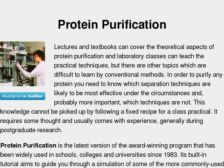 The Protein Purification Lab is a interactive computer simulation of protein purification. This program is extremely helpful for beginners in the art of protein purification. It gives students a chance to get beyond the details of individual techniques and get a sense of the overall process of a...