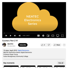 This video, made available by the Northeast Advanced Technological Education Center (NEATEC), is part of the NEATEC Digital Electronics Series from Professor Roger Young. This video is the second of two that describes counters. The recording runs 37:48 minutes in length and part one is available to...