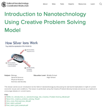 This lesson, presented by the National Nanotechnology Coordinated Infrastructure, covers "an introduction to the field of nanotechnology by discussing its real-world implications in light of current economic issues and conditions. The lesson is performed using the Creative Problem-Solving format and...