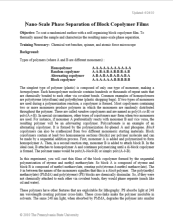 This 5-page document, created by the Nanotechnology Applications and Career Knowledge Network (NACK) Center at Pennsylvania State University, serves as a guide for a laboratory activity where students "cast thin films of the block copolymer formed by the sequential polymerization of styrene and...