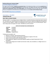 This 8-page syllabus and 6-page course outcome summary, published by Northeast Wisconsin Technical College (NWTC), provide information about the Automation 1: Control Logic course taught at NWTC. During this course, students have the opportunity, "... to develop the knowledge, skills, process and...