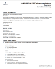 This 4-page course outcome summary, published by Northeast Wisconsin Technical College (NWTC), provides information on the learning outcomes for the Telecommunications Capstone course offered by NWTC. The course "provides an opportunity for students to successfully complete a major project...
