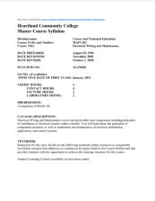 This 4-page syllabus, published by Heartland Community College (HCC), provides information about the Electrical Wiring and Maintenance course taught at HCC. The course focuses on electrical safety and the principles of installing electrical circuits in a facility. Throughout the course, students...