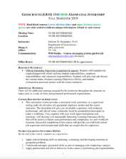 These resources include a 3-page syllabus and a 1-page course table map for the Geospatial Internship course at Weber State University. "This summative course provides a structured work experience in a supervised setting under the direction of a geospatial employer mentor and the course instructor....
