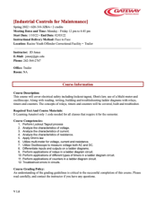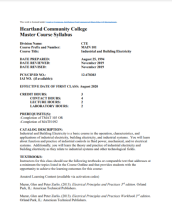 This 4-page syllabus, published by Heartland Community College (HCC), provides information about the Industrial and Building Electricity course taught at HCC. Throughout the course, students "learn about function and practice of industrial controls in fluid power, mechanical, and/or electrical...