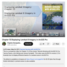 This video, provided by Virginia Geospatial Extension, is part of a series of 28 tutorial videos on remote sensing with ArcGIS Pro. This tutorial "uses ArcGIS Pro version 2.3 to illustrate how to display different bands of a Landsat scene..." The band's properties are examined, including viewing and...