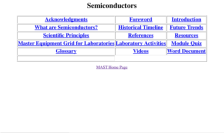 This page of semiconductor modules, from the University of Illinois at Urbana-Champaign's Department of Materials Science and Engineering, is split into several main topics: What are Semiconductors?, Historical Timeline, Future Trends, Scientific Principles, References, Resources, and Master...