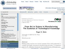 This paper, from Roger Bohn at the University of California, San Diego, "models knowledge about manufacturing methods as a directed graph of cause-effect relationships." The paper covers changes in knowledge over time, including the shift from art to science in technical and manufacturing knowledge.