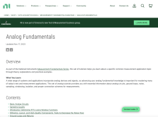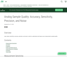 This tutorial is provided by National Instruments and covers the basics of analog sampling quality. Topics include Resolution, Measurement Sensitivity, Accuracy and Example Accuracy Calculation, and Difference between Precision and Accuracy. The page also includes a video demonstration on analog...