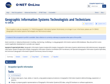The U.S. Department of Labor Employment & Training Administration has created O*NET, a collection of detailed descriptions of the world of work for use by job seekers, workforce development and HR professionals, students, and researchers. This particular page explores the vocation of Geographic...