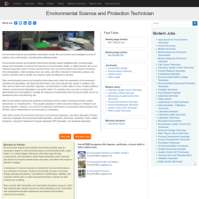 This page from Bio-Link's career website features information about the different jobs and opportunities in the environmental science and protection technician career area. This page includes a brief description of environmental science and protection technicians, who "monitor the environment and...