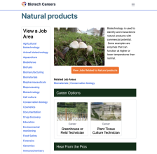 This page from Bio-Link's career website features information about the natural products career area. This page briefly describes how biotechnology and natural products are related. Related jobs are included.