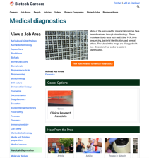 This page from Bio-Link's career website features information about the different jobs and opportunities in the medical diagnostics career area. This page includes a list of medical laboratory tests that have been developed through biotechnology. Links to related articles, alumni profiles, jobs, and...