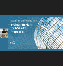 This webinar and accompanying informational packet, published by EvaluATE, provide information about evaluation plans for National Science Foundation (NSF) Advanced Technological Education (ATE) grant programs. In the webinar, presenters discuss the essential elements of an evaluation plan and how...
