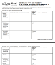 This resource, provided by EvaluATE: Evaluation Resource Center for Advanced Technological Education, is a 2-page template that provides assistance in identifying a National Science Foundation (NSF) project's intellectual merit and broader impacts. The template provides a brief explanation of...