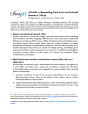 This 4-page guide, provided by EvaluATE: Evaluation Resource Center for Advanced Technological Education, answers common questions about establishing relationships with, working with, and requesting data from institutional research (IR) offices. The guide includes background information on IR...