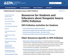 This website is provided by the United States Environmental Protection Agency and includes resources for students and educators about Nonpoint Source (NPS) Pollution. Sections of this website include NPS Pollution Activities for Students, Other Resources Specific to NPS Pollution, and Additional...