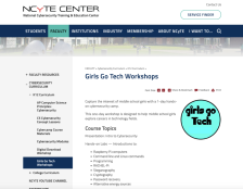 This webpage, from National Cybersecurity Training and Education (NCYTE) Center, is a "one-day workshop designed to help middle school girls explore careers in technology fields." Included on the webpage is a list of course topics and downloadable course materials.
