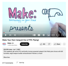 This video is provided by Make Magazine and demonstrates how to make a catapult out of PVC piping. "This weekend, get some PVC and build a human powered catapult. Bre Pettis joins forces with Bill Gurstelle, seige weapon builder extraordinaire!" The video runs 3:05 minutes in length.