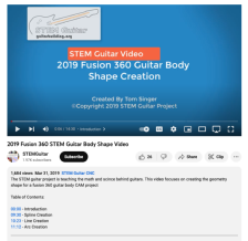 This video, made available by the STEM Guitar Project, is a narrated demonstration of the creation of the geometrical shape of electric guitar bodies in Fusion 360 computer-aided manufacturing software. Topics covered include: Introduction, Spline Creation, Line Creation, and Arc Creation. The video...