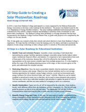 This 2-page guide, made available by Madison Area Technical College, provides a ten step project management plan for creating a solar photovoltaic roadmap based on the college's own experience. The steps are as follows: Identify Team and Articulate Purpose, Motivating Objectives, Identify...