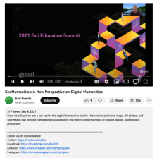 This video, from the 2021 Esri Education Summit, provides two presentations that explore new perspectives on digital humanities through the use of data visualizations. In the first presentation, Caitlin Dickinson explores creative uses of GIS in the digital humanities. Dickinson provides examples of...