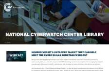 This webinar from the National CyberWatch Center is part of a series of webinars on cybersecurity. In the webinar, Diane Delaney and Megan Roddie discuss "neurodiversity and cybersecurity at IBM and the importance of having neurodivergent teams." IBM's neurodiversity initiatives, recruitment...