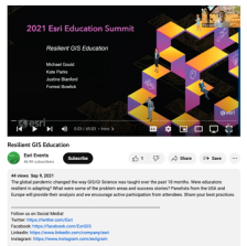 This video, from the 2021 Esri Education Summit, highlights the ways in which the global pandemic COVID-19 changed the way GIS/GI Science was taught. Michael Gould, Kate Parks, Justine Blanford, and Forrest Bowlick discuss adaptions, resilience, problems, success stories, and more. Gould introduces...