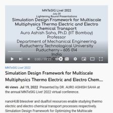 In this video, provided by the Support Center for Microsystems Education (SCME) at the annual MNTeSIG Live! 2022 virtual conference, Auro Ashish Saha from Puducherry Technological University explores nanoHUB btesolver and dualfoil resources that enable the study of thermo electric and electro...