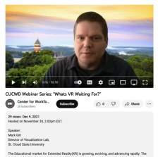 In this webinar, Mark Gill, from St. Cloud State University, explores the educational market for extended reality (XR). Gill explores the market for educational virtual reality (VR) technology, social VR platforms, the opportunities and challenges associated with establishing XR educational...