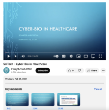 This video, from Forsyth Technical Community College, is part of the 2021 SciTech Lecture Series. This series of lectures and interviews is held every year and covers an array of science and technology topics. In the video, Jennifer Anderson presents on cybersecurity and biosecurity in healthcare....