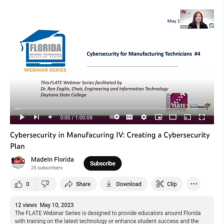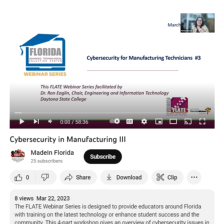 This video from Florida Advanced Technological Education Center for Manufacturing (FLATE) is part of a series of webinars that explore cybersecurity for manufacturing technicians. The series explores the intersection of information and operational technology, and provides guidelines for developing...