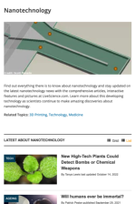 This website from Live Science includes resources that cover developments in nanotechnology. This site details the future benefits that nanotechnology research could serve including advances in telecommunications, information technology, healthcare, and pharmaceuticals. Articles, countdowns, image...