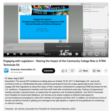 This webinar, provided by the American Association of Community Colleges, offers insights and guidance on some effective techniques for engaging with legislatures and includes some talking points regarding the National Science Foundation Advanced Technological Education (ATE) program and STEM...