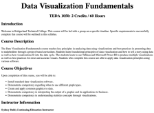 This Data Visualization Fundamentals course, taught at Bridgerland Technical College, introduces students to the core principles of data visualization essential for data analysis. With a focus on practical application using industry-standard tools, participants learn to...