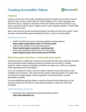 This tip sheet from the National Center for Accessible Media provides guidelines for creating accessible video content. It covers the topics of captioning, writing narrative descriptions, and choosing an accessible media player. The tip sheet also offers links to additional resources for creating...