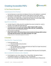 This tip sheet from the National Center for Accessible Media provides guidelines for creating accessible PDFs in the source document as well as Adobe Acrobat. This guide covers topics like creating document structure, exporting, running accessibility checks, and creating accessible images and alt...